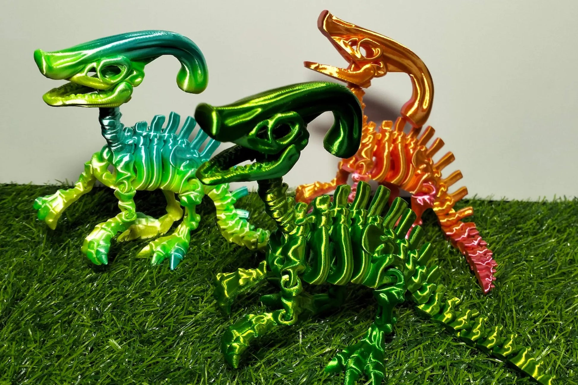 Bring a touch of prehistoric wonder to your collection with this articulated Skeleton Parasaurolophus, professionally 3D printed, finished, and ready to display. Designed by Flexi Factory and crafted by us as authorised makers, this model features smooth flexi articulation, detailed skeletal shaping, and the iconic crest that makes the Parasaurolophus so unique.